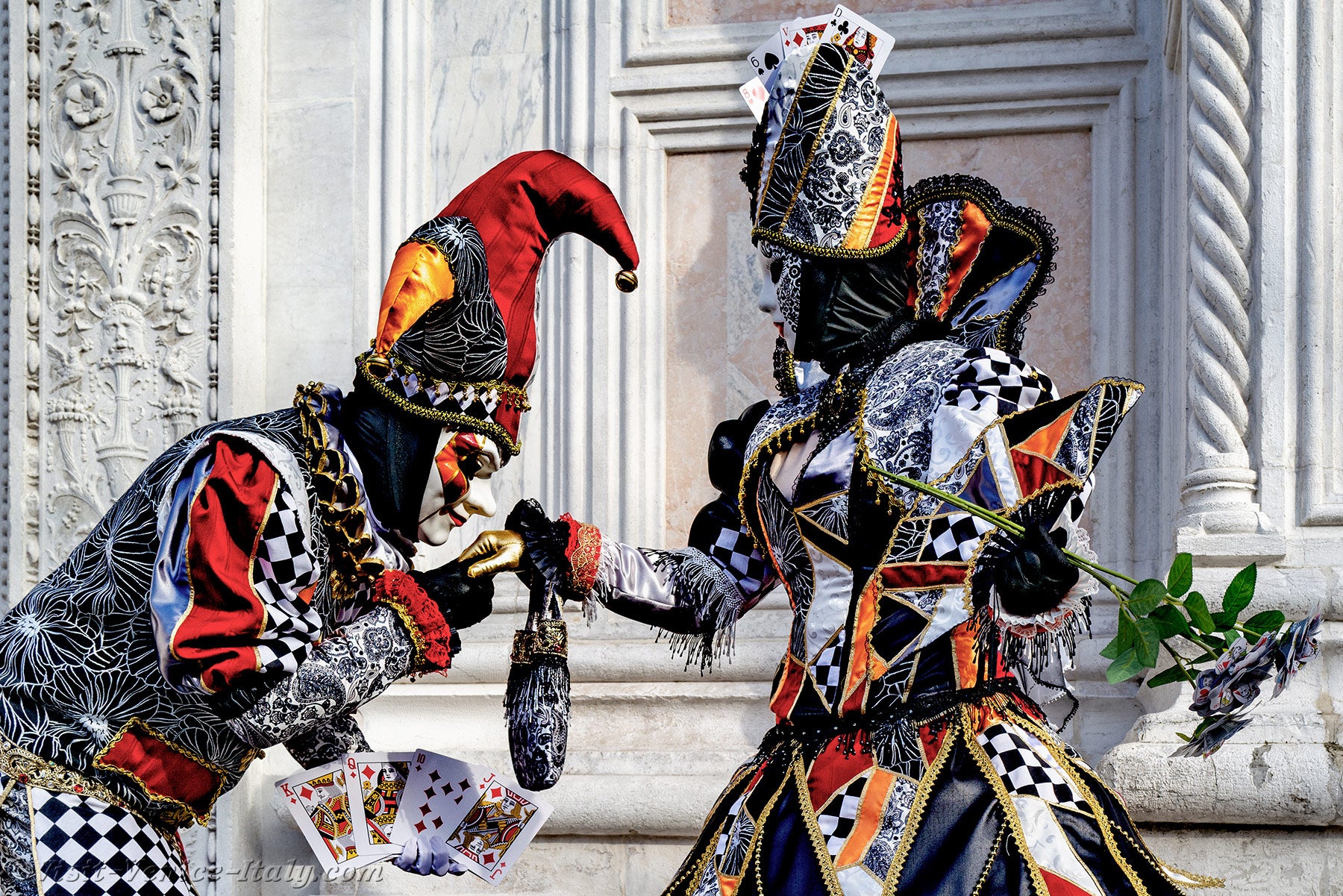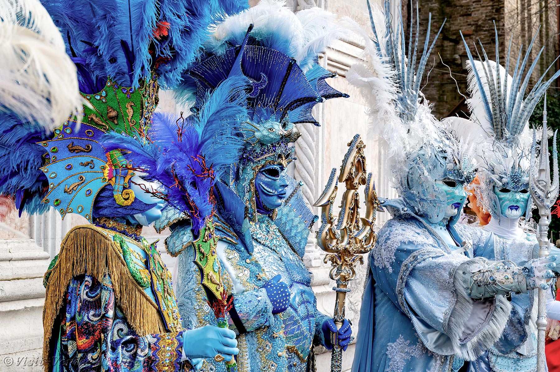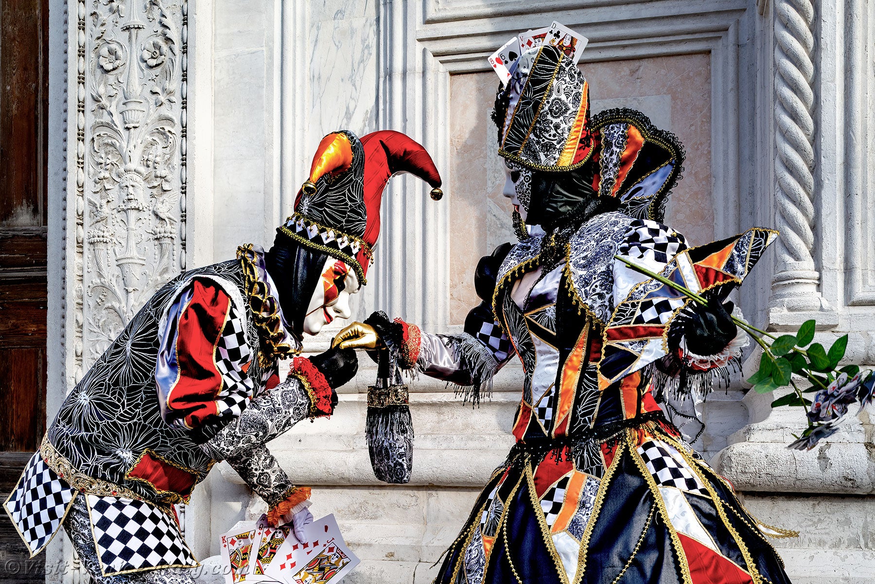 After the departure of the king's jester and his lady, our two poetic Pierrots returned to Campo San Zaccaria, accompanied by the graceful fairy of love, dressed in orange and red.Then, Neptune, Oceanus, Thetis and the sea nymph once again emerged from the depths to remind us of Venice's domination of the seas at the height of its Republic.